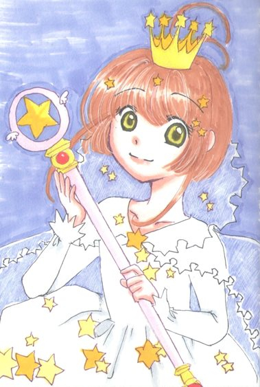 せっかく久々にカラーで描いたしたまには原寸大で!と思ったら大きかった;(これでも縮小してます)なるべく資料通り描きましたがこの衣装かなり細かいので間違ってるとこもあります。マント(?)の透けた感じは白のボールペンで塗りつぶしました。本当は月さんとセットですが、月さん描けないのでさくらちゃんオンリーで・・・。
