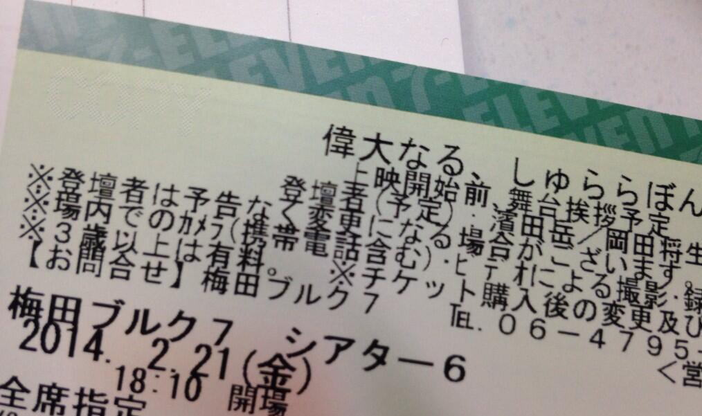 大阪なので普段なら日帰りするところですが、開映が6時半だったので大阪に一泊することに。ばたばたと慌ただしかったですが、間近で生岡田くんが見られてほくほくしておりましたv
