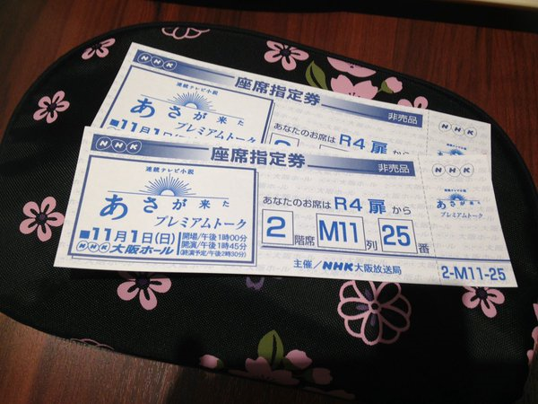 11月1日は先着で見られる「あさが来たプレミアムトークショー」のためにNHK大阪まで行ってきましたー。前日もやっててえらい人だったみたいなので5時起き、6時半頃の電車で行ってきたので眠くて仕方なかったです・・・。それでもぎりぎり私まで配布されたのでよかったですが、もうちょっと遅かったら見られなかった;