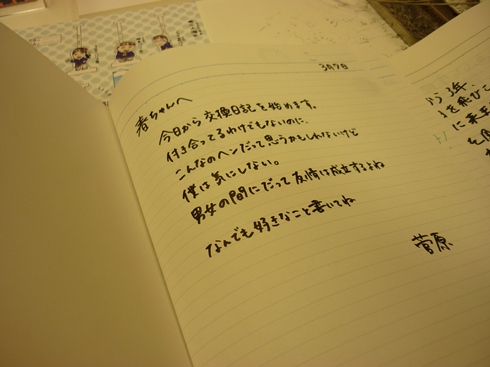 そこのカウンターにあった菅原さんと春子さんの交換日記。