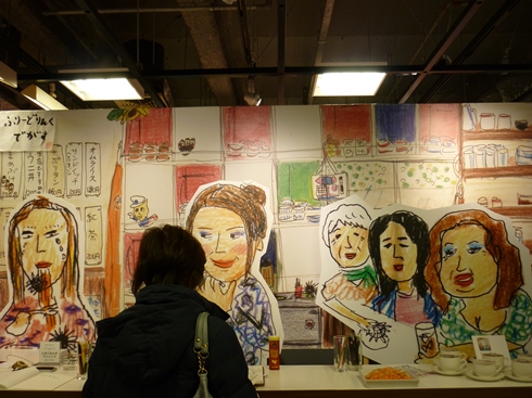 入ってすぐ左右の壁に青木俊直さんの週あま絵がずらーっと飾られてたんですが・・・これ正直ゆっくり見られませんでした。日曜で人が多かったのもありますが狭い!片方の壁の見終わったらまたもう片方に行って見ないといけない。そういうわけであんまりじっくり見るのも面倒になってざっと見たら次のところへ行きました。