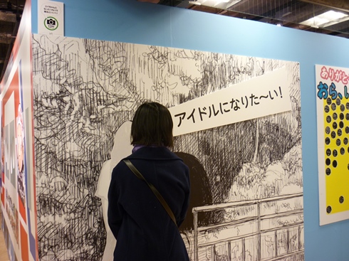 ミズハグ絵とかミズタク抱き枕(?)とかで埋め尽くされています。こちらはシラトリユリさんのイラストが多め。紅白のあまちゃんイラストも展示されてました。他の絵師さんのイラストは6点ずつくらいありました。原画もけっこうあって見ごたえありました。