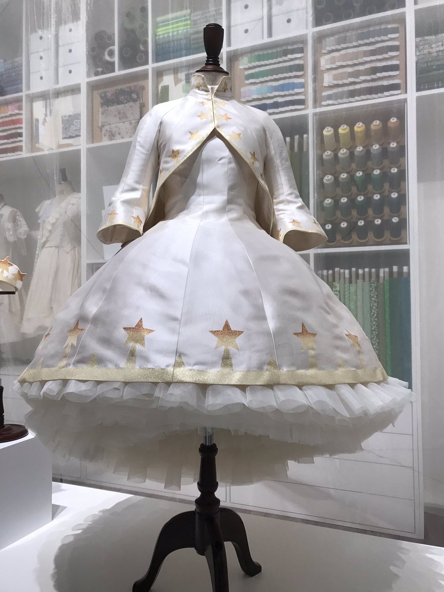 知世ちゃんが作ったバトコス4つとCLAMPメンバーの1人、もこな先生が作られたミニドレスが飾られてました。