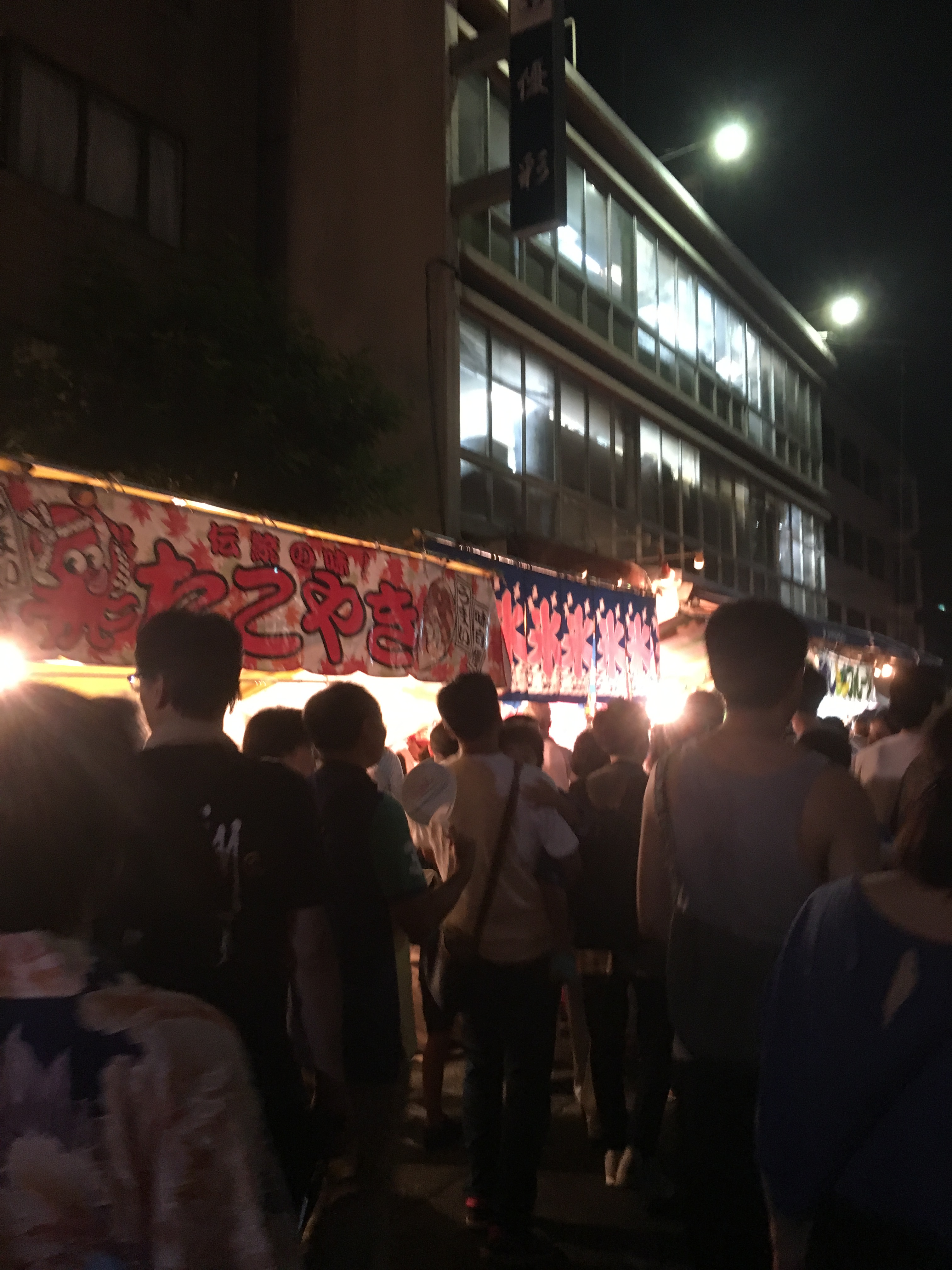これには写ってませんが「電球ソーダ」というのが気になりました(電球型の容器にソーダが入っている)。なんか電気ブランみたいだし(笑)と人混み抜けたところに出てたら買おうと思いましたが、ちょうどその頃には見当たらず断念。しかし買いはしなくても屋台ってうきうきします。特に夜店。