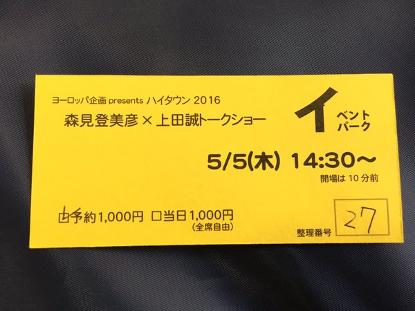 GW最終日の5日はハイタウンでやっていた森見さんと上田誠さんのトークショーに行ってきましたー。四畳半アニメつながりのお2人ですが、四畳半以外のことも色々お話されてて楽しかったです。もう4日経ってるので少々記憶が薄れてきていますが、覚えてる範囲でレポを。