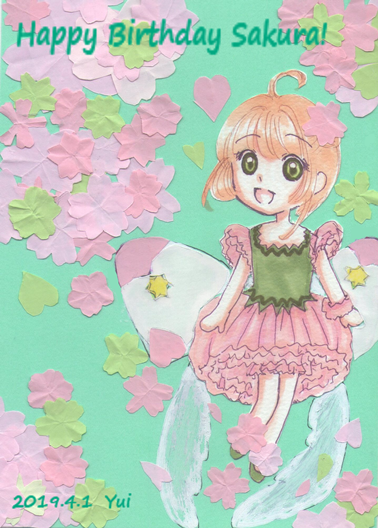 今年はだいぶ早めに仕上げてました。さくらちゃんの衣装はさくら展用に描いたバトコスを少し変えたものなんですが、この若葉色(?)の色紙に貼り付けるべく他の紙に描いたやつを切り抜いてます。