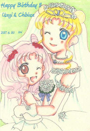 今日はうさぎちゃん&ちびうさのお誕生日ということで、多分数年ぶりにちゃんとお祝い絵描けました。おめでとー!