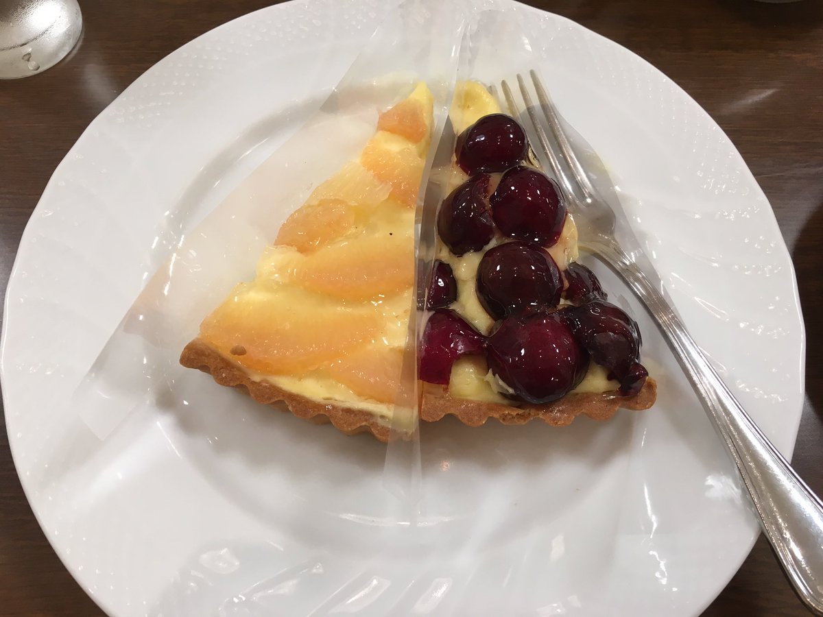 ケーキというか紅玉りんごを使ったミルフィーユですが、煮詰めたりんごがたっぷり入ってて贅沢なミルフィーユって感じでおいしかったです。まあミルフィーユなので切り分けにくかったけど・・・。カスタードクリームもパイ生地もおいしかった。写真左は小山のお店で撮らせていただいたもの。