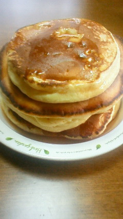 衝動的にホットケーキ食べたくなったのです。しかし黒こげ&はちみつの容器に入ってた梅ジュースを間違ってかけてしまい、めちゃくちゃまずかったのですが;