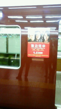 阪急電車に貼られた映画「阪急電車-片道15分の奇跡-ポスター。