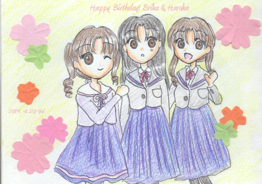 春香は17日なので過ぎてしまいましたが、今日誕生日のえりかと同じ誕生月ということでざっくり描きました。