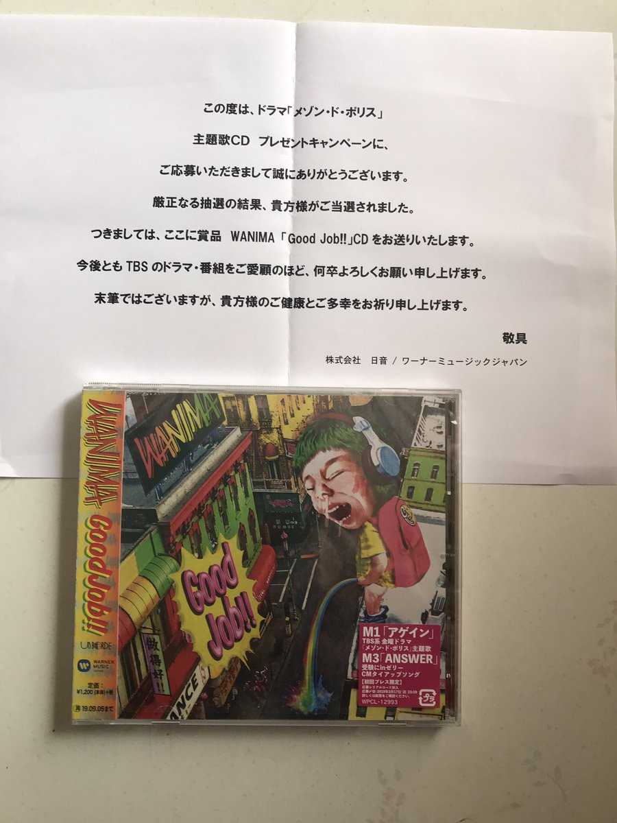 先日メゾンドポリスで応募しといた主題歌CDが届いてびっくり!(来たの28日だった)。