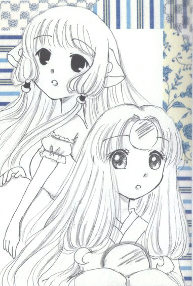 先月号のミラーちゃんが「ちょびっツ」のちぃちゃんぽくて可愛かったなと思って一緒に描いたものと、色鉛筆一発描きの知世ちゃん。