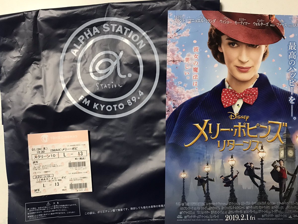 1月24日はαステーションの抽選で当たった「メリーポピンズ・リターンズ」の試写会へTOHOシネマズ二条へ。