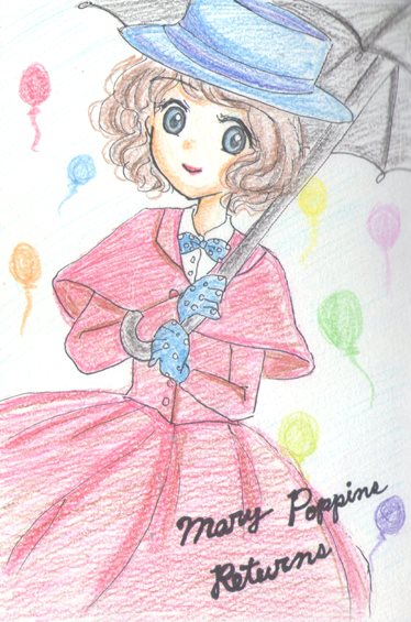 右の絵はメリーポピンズのお洋服が上品で可愛くて描いたものですが、私が描くと少女っぽくなりましたね・・・。