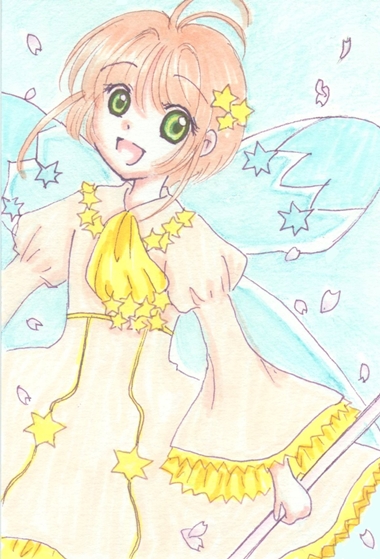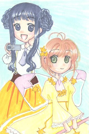 今回の話は原作だと記録と2つセットなんですが、知世ちゃんの私服も可愛かったので一緒に。一部CLAMPセレクション使ってますが、一緒に入ってたコピック講座にさくらちゃんの髪色は載ってなかったので適当に色組み合わせて塗りました。