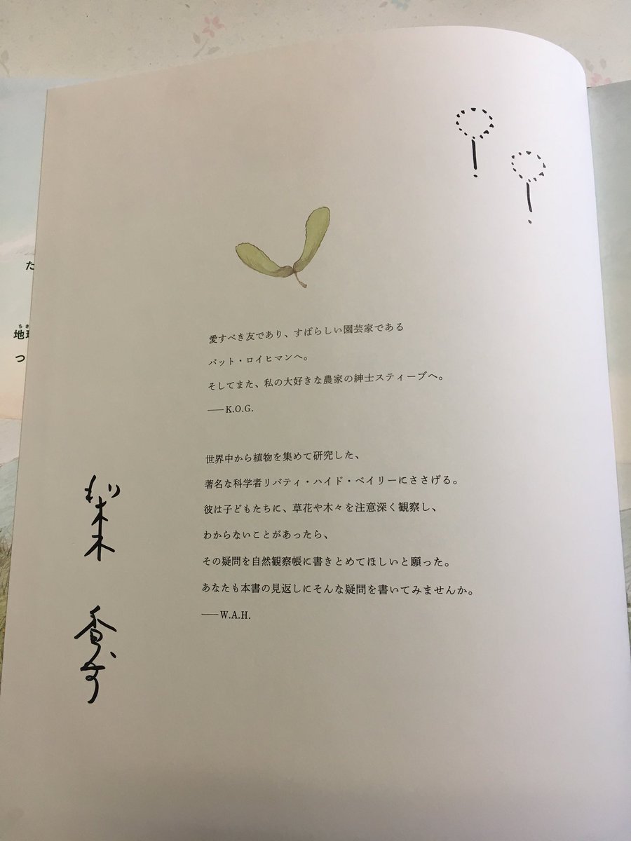 梨木さんのサインとたんぽぽの綿毛のようなイラスト(どちらも梨木さんの直筆)。