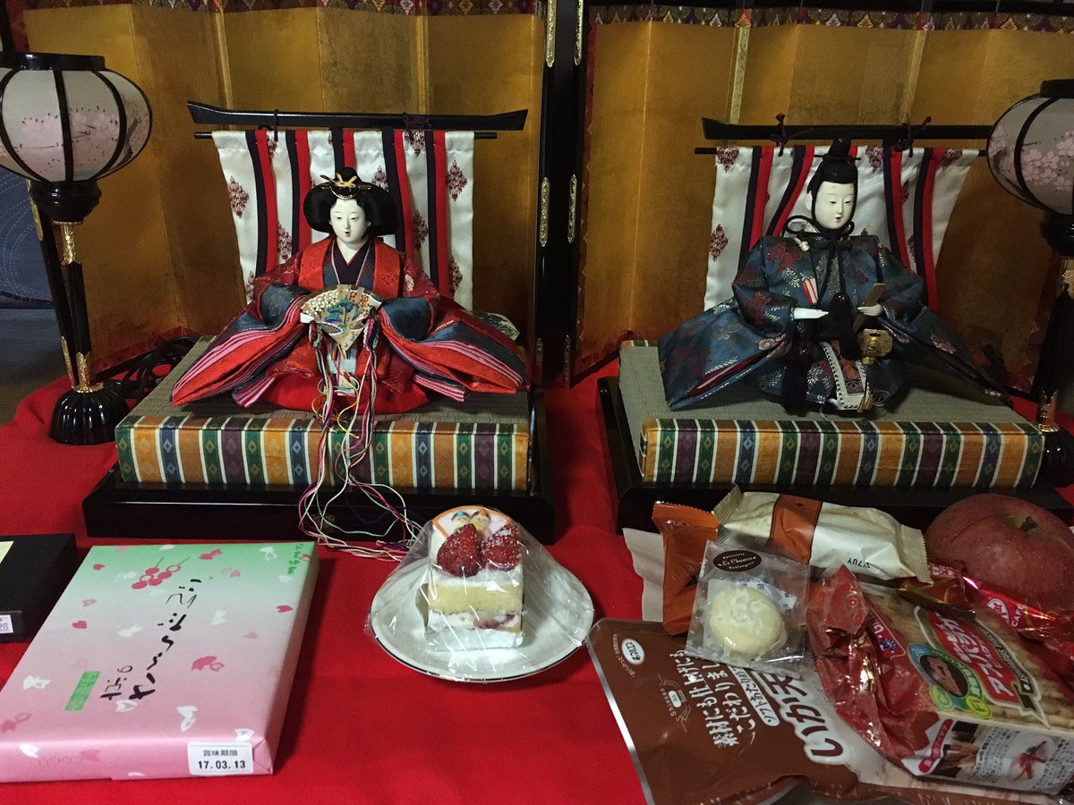 なんか色々余計なもの写ってますけど(笑)我が家のお雛様です。関東と関西は並べ方違うので毎年左右どっちだったか忘れます。
