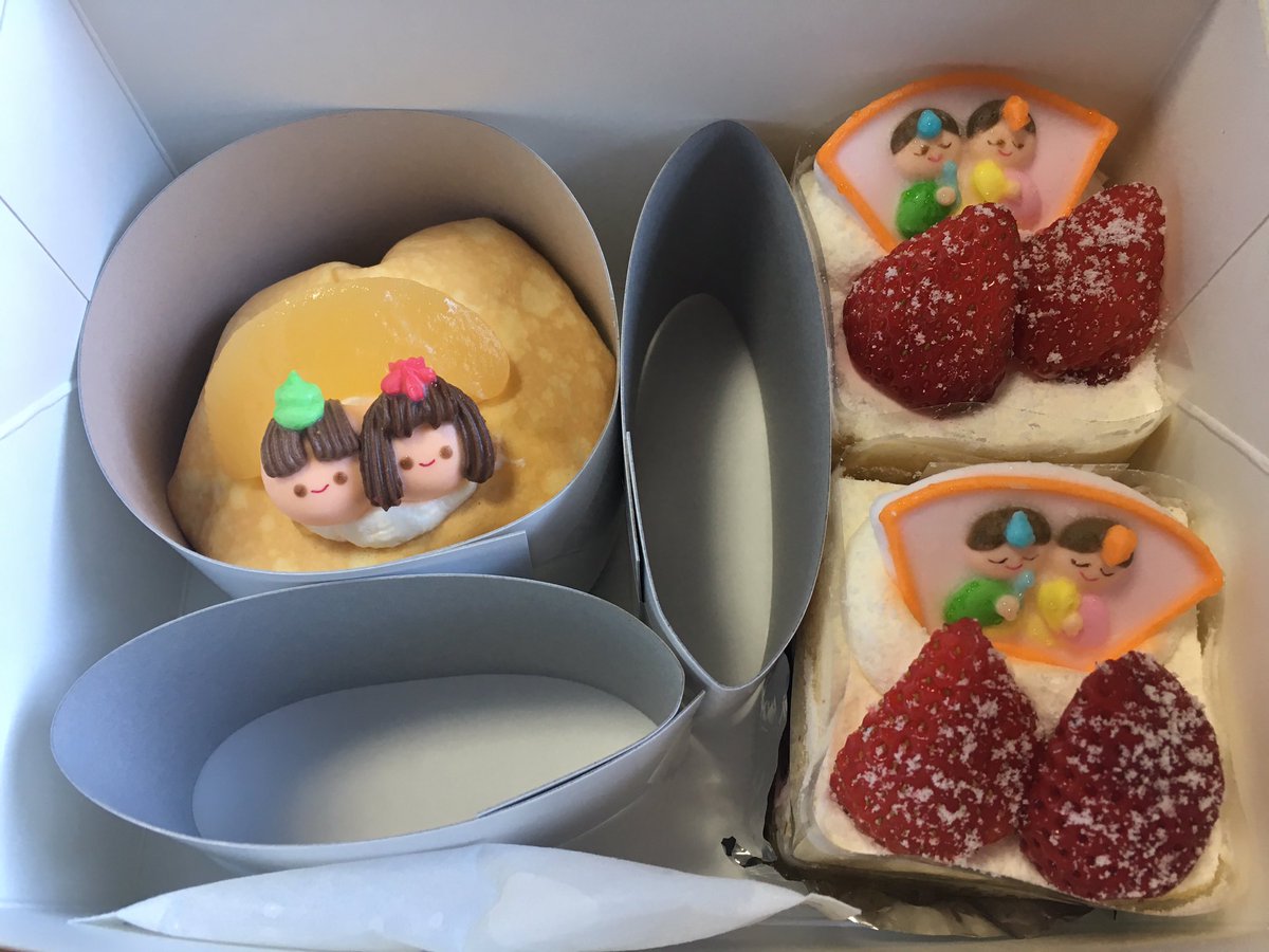 皮膚科の帰りに買ってきたひな祭りケーキ。