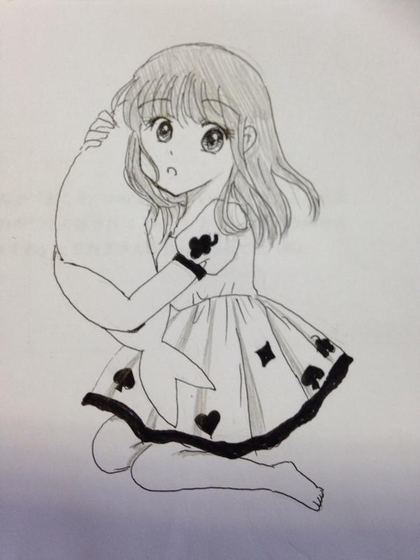 着てるパジャマは私の持っているトランプモチーフのものがモデル。ラクガキなので腕とかバランスおかしいのは見逃してください。