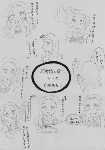 シャーペン一発描きなのでかなり雑ですが、一度描いてみたかったので、今のところ訳してるアリスのセリフをいくつか抜粋。