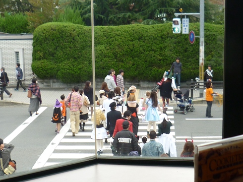 学祭帰りに寄ったお店から見えたハロウィン仮装団体(笑)
