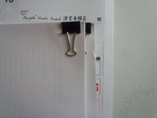 昨日「Arigato Novels Award」に出したもの(レターパックなのでポストに入れるだけでOK)。
