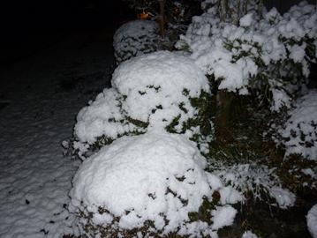 なんか植木に雪が積もって、雪だるまっぽい(笑)